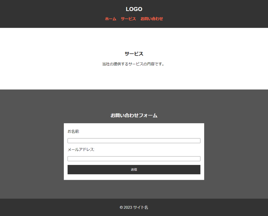 この例はシンプルでとても小規模なので、HTML・CSSともにかなり冗長なコードになりました。フッターに関しては書かないと気持ち悪いという理由だけで記述したので解説の意図はありません。