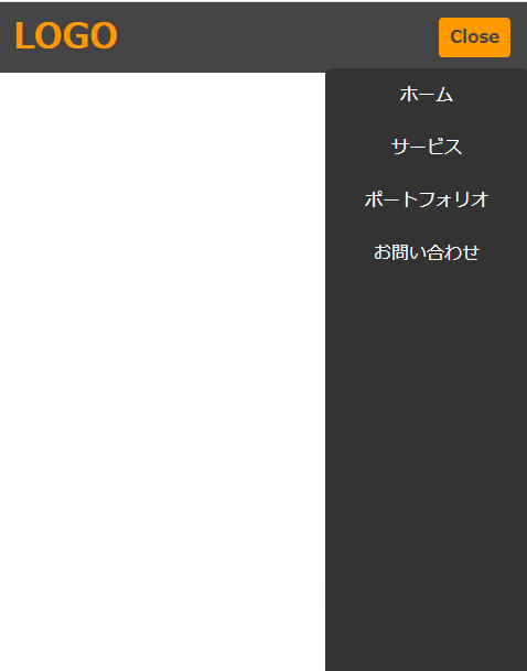 最後にナビゲーションメニュー表示後のスタイリングを行います。まずはJavaScriptが正常に動作しているかの確認も含めて、ナビゲーションメニューの表示のみを設定します。