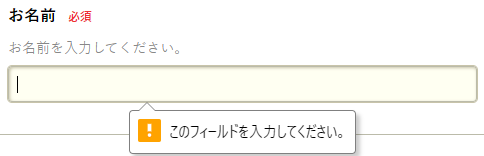 お名前入力欄の入力例は「山田 太郎」となっています。これは、苗字と名前をフルネームで入力してもらう意図であることが分かります。