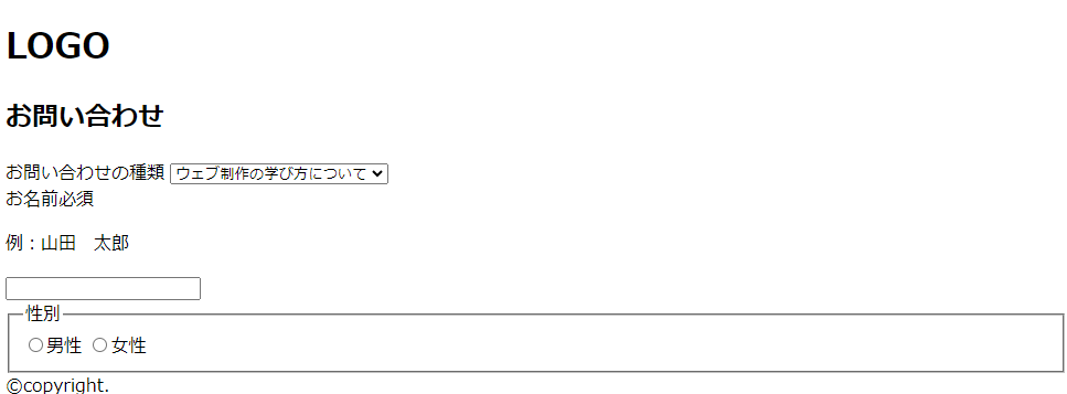 性別のマークアップができました。ブラウザで確認すると以下のように表示されます。