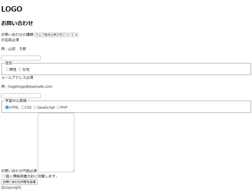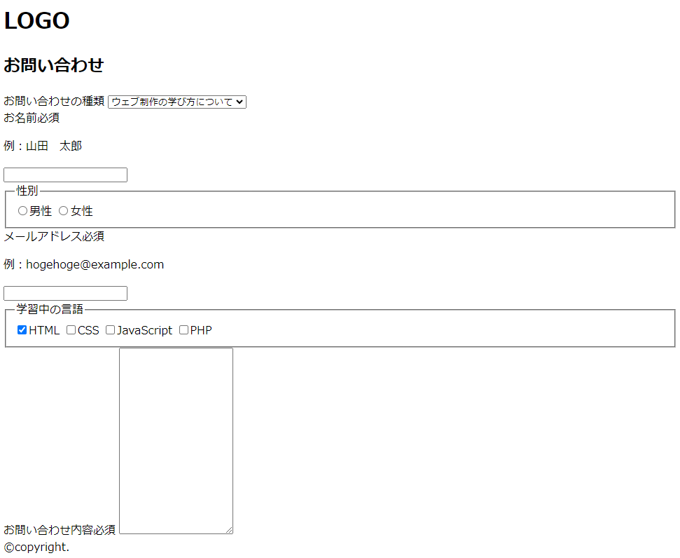 - お問い合わせページのHTMLの基本構造